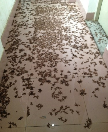 華南理工大學學生在新浪微博上感嘆,飛蟻數量居然多到讓小伙伴不慎品嘗了一只。大家紛紛用書本等拍打,有同學甚至想在宿舍養青蛙。