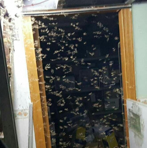 “中山大學中大青年”藍色官方微博也發布信息稱“中大各校區遭到飛蟻強勢侵入”,并且附上了密密麻麻的飛蟻照片,提醒大家關好門窗。
